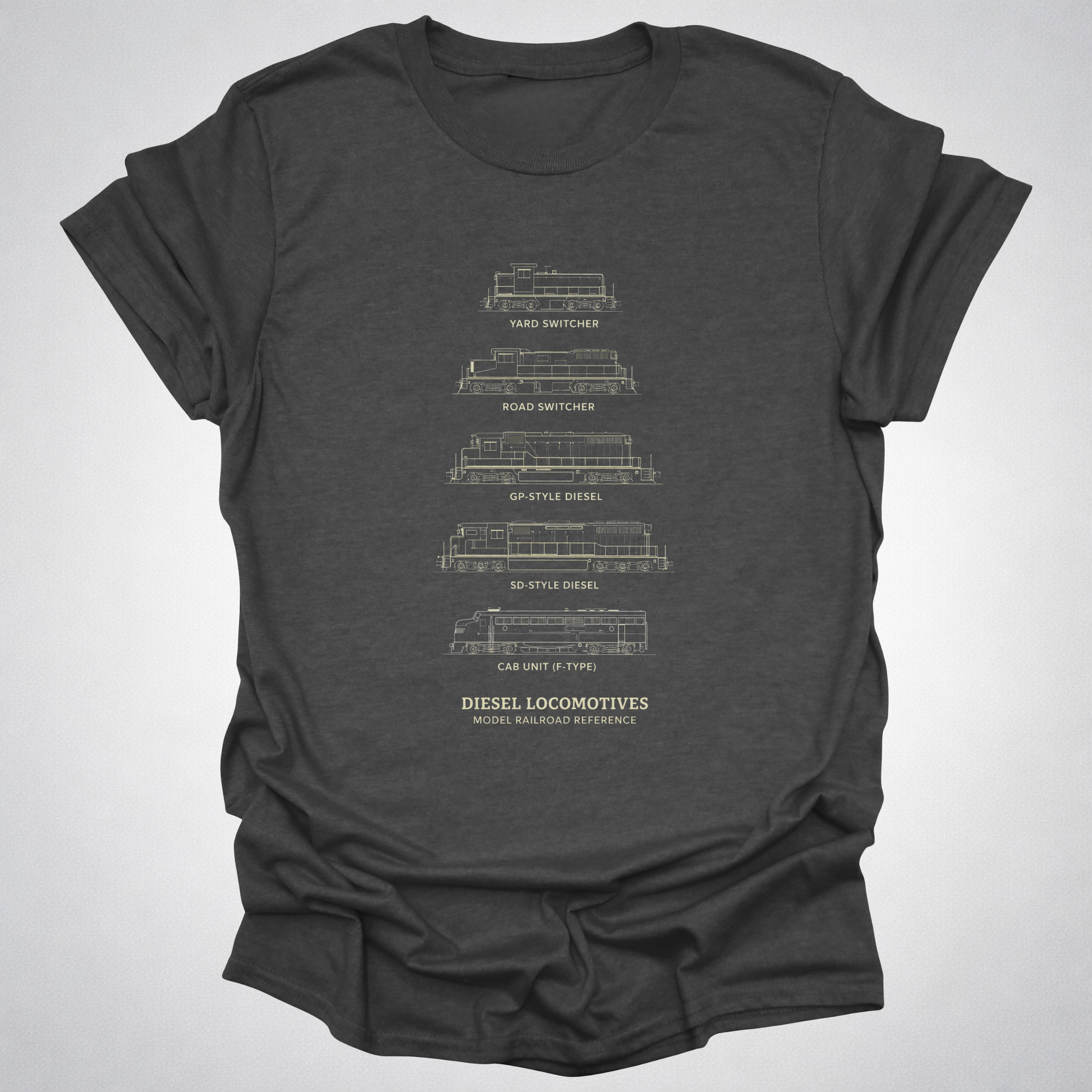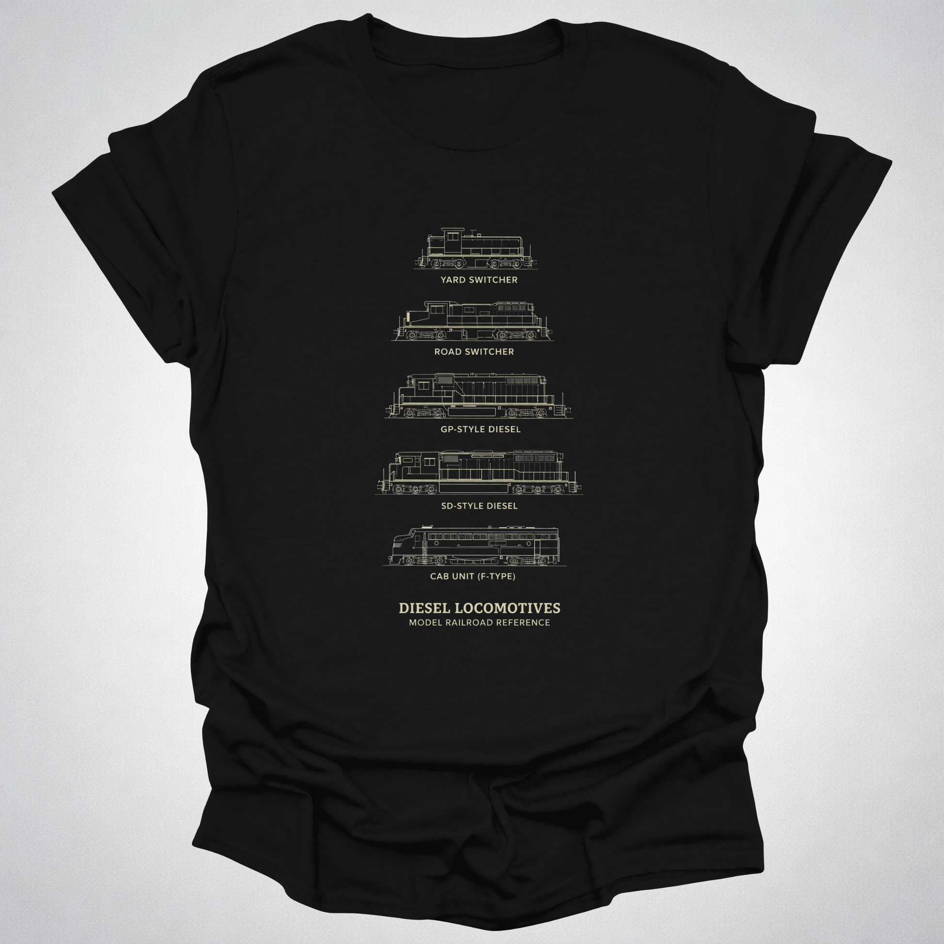Diesel Locomotives Model Railroad T-Shirt | Classic Diesel Types Reference Railfan Tee